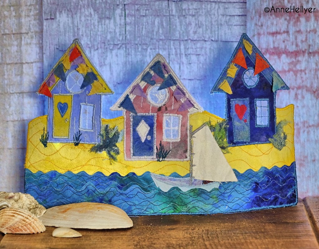 Threads required: Beach Hut : A minimum of blue and white but if you have them please also bring other seaside colours.