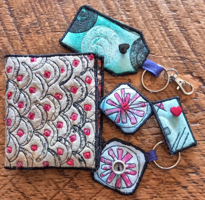 You will learn how to “draw” with your sewing machine – once you have created your design you will stitch it to make either a small zipped bag, a needle case, or brooches. Further embellishment such as hand stitch and buttons or beads can be added.