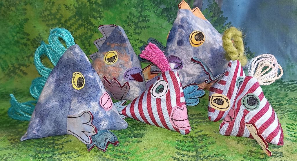 These fun little creatures can be created using either hand or machine stitch. There will be a variety of “features” to choose from and once finished the “bodies” are filled with sand to help keep your pins sharp.